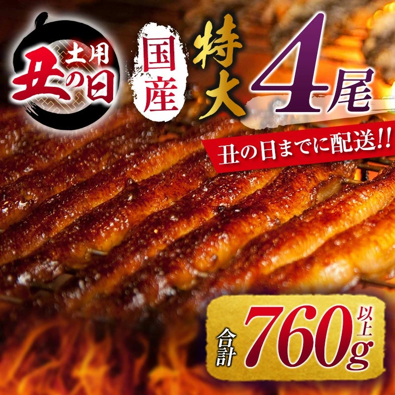 国産うなぎ 蒲焼 数量限定 特大 高評価 4尾 計760g以上