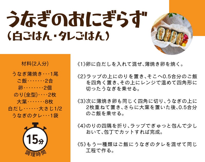 うなぎのアレンジレシピは、握らないおにぎり「うなぎのおにぎらず」がオススメ!