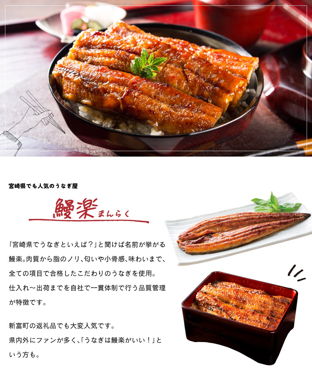 長年に渡り、鰻楽と提携する新富町内の生産者のうなぎに限定した新富町産の国産うなぎ。