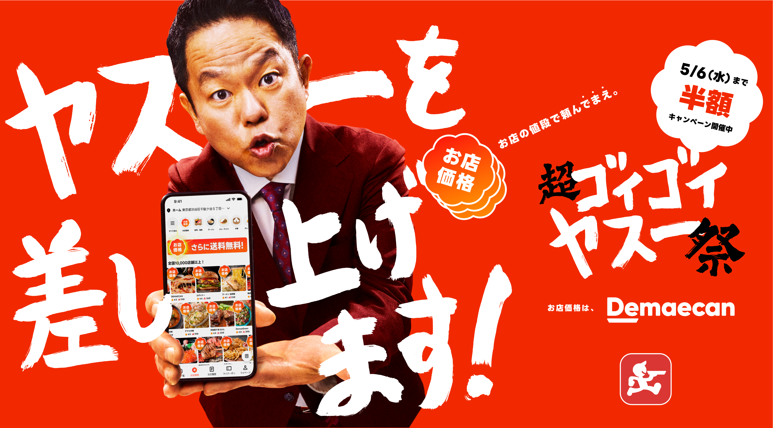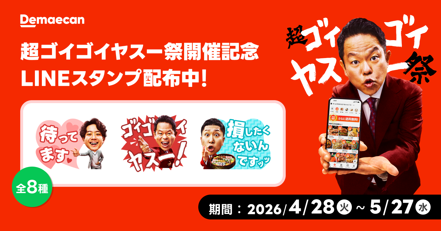 株式会社出前館は、運営する日本最大級のデリバリーサービス「出前館」において、出前館史上最大級のゴールデンウィークキャンペーン「超ゴイゴイヤスー祭」を2026年4月27日(月)〜 2026年5月6日(水)まで開催いたします。