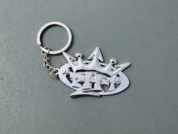 コラボverのking logoが輝くシルバーキーホルダー。