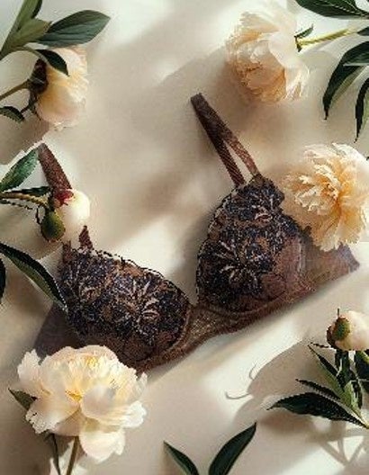 今シーズンはブラジャーのストラップの肩部分がワイドになり、食い込みにくく、安定感もアップ。レースは、秋に花を咲かせるコルチカムがモチーフです。花びらが何重にも重なって咲く八重咲きの様子をイメージ。動きのある花びらがセンシュアルなムードです。