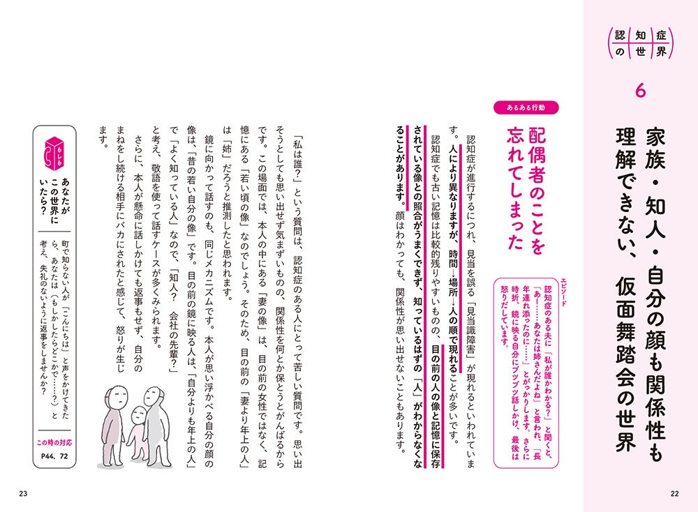 そこでこの本では、認知症の人の行動のロジックをひもとき、困った行動をとってしまう理由を解説します。