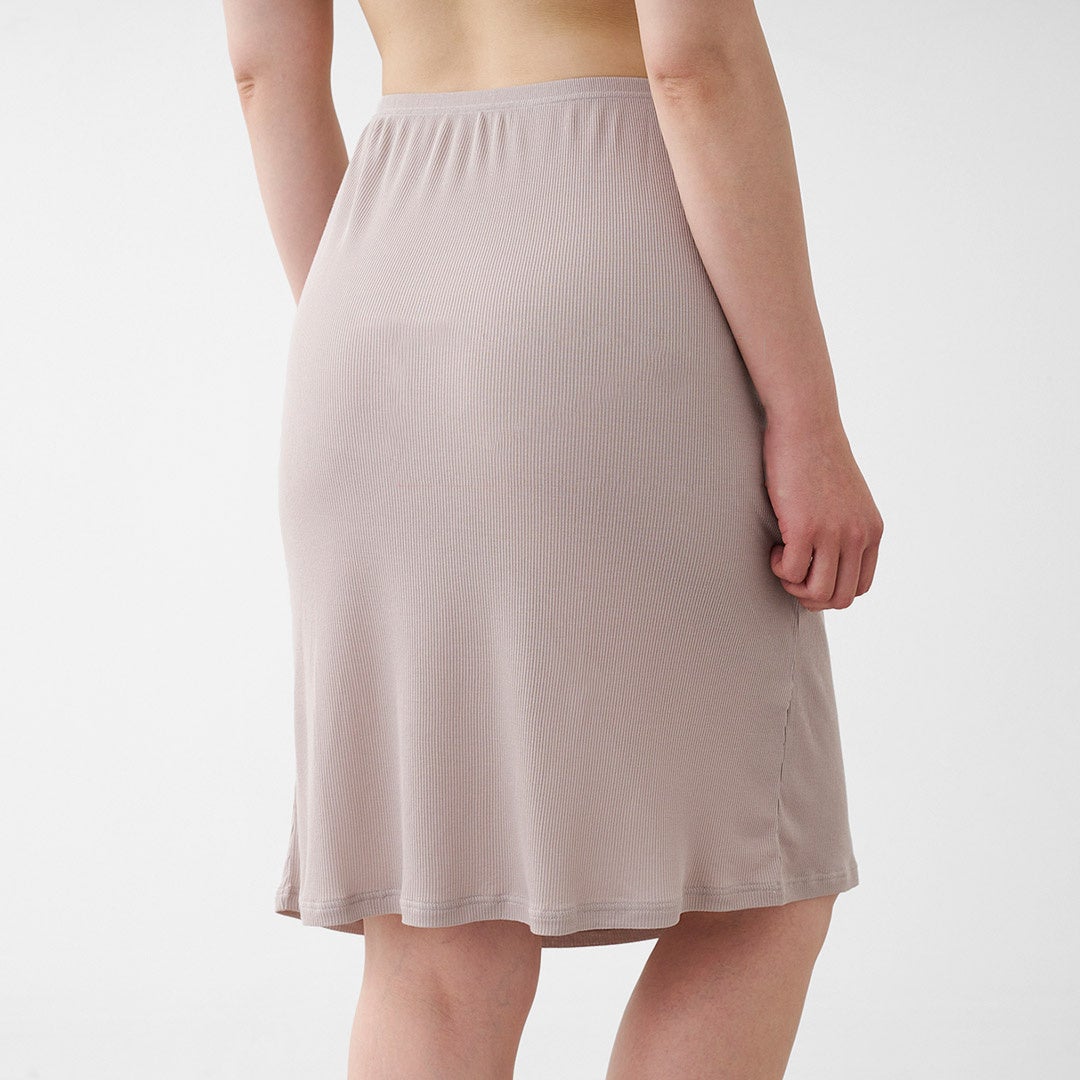 スカートやワンピースの服のインにぴったりな、膝上丈のスカートタイプです。どのスタイルにも合わせやすく、汗染み対策は勿論、透け防止にも最適です。