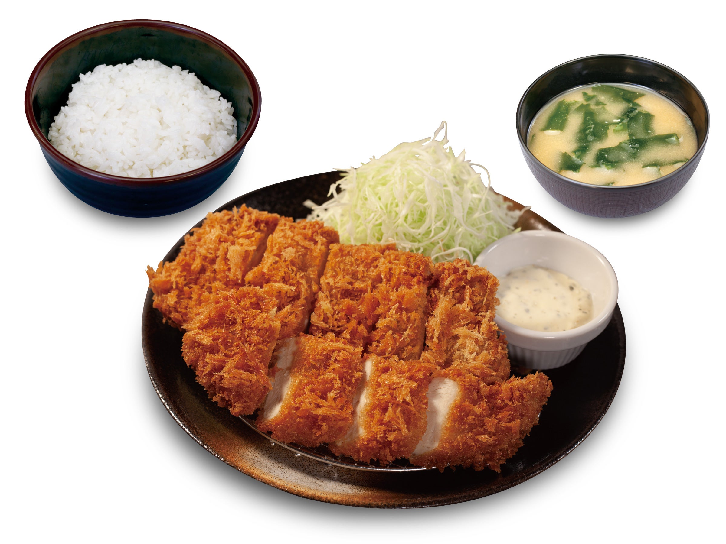 ジューシーな鶏もも肉を使用したやわらか「チキンかつ」が復刻!豊富なラインナップでお届けします。特製タルタルソースが美味しい「タルタルチキンかつ定食」をはじめ、八丁味噌風の味噌ダレがかかった「味噌チキンかつ定食」、さっぱり大根おろしがのった「鬼おろしポン酢チキンかつ定食」の3種に加え、シンプルにチキンかつをご堪能いただける「チキンかつ定食」もご用意しております。