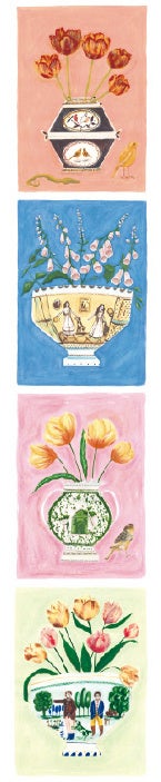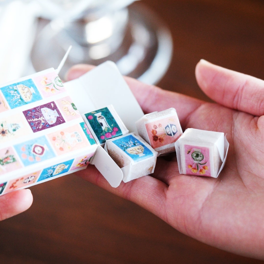 花瓶にお花をいけたカラフルなデザイン。テープをそのまま伸ばして使うのも、絵柄をひとつずつ切り取って使うのも、お好みに合わせて自由にお楽しみください。