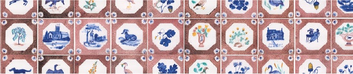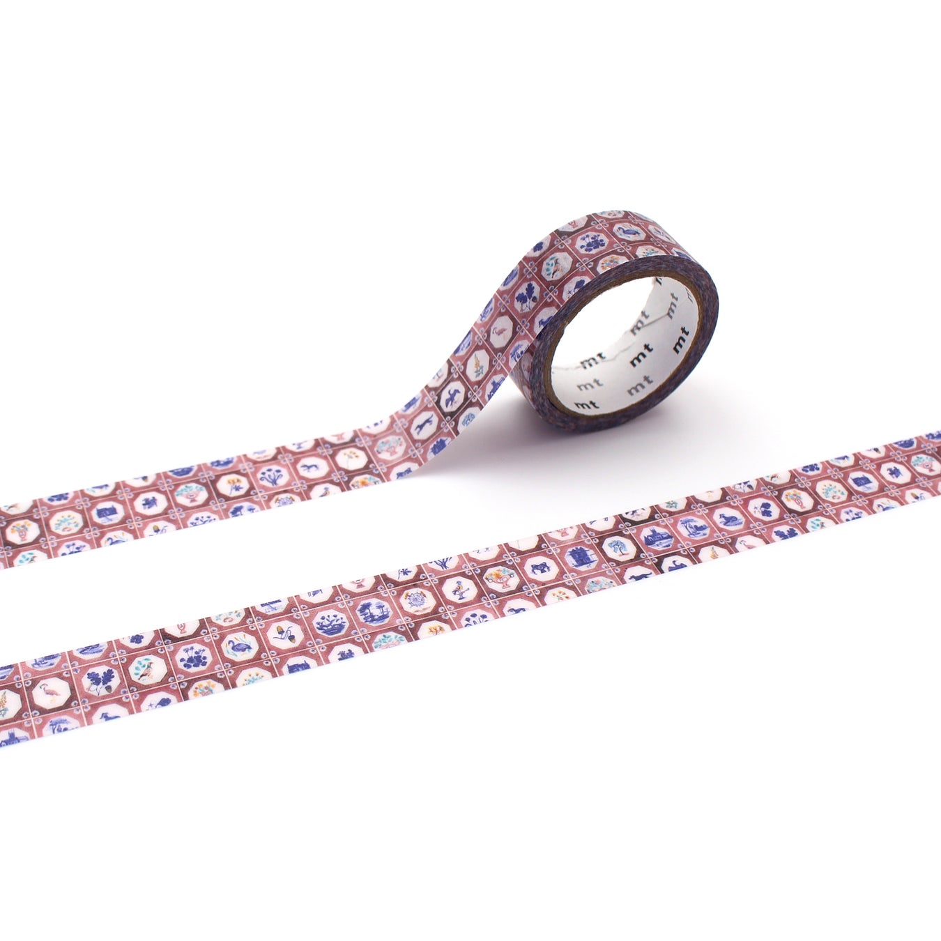 Pollyが描く動物や植物などのタイル作品を繋ぎ合わせたマスキングテープ。ブラウンとブルーの絶妙なコントラストが、落ち着いた雰囲気を醸し出します。