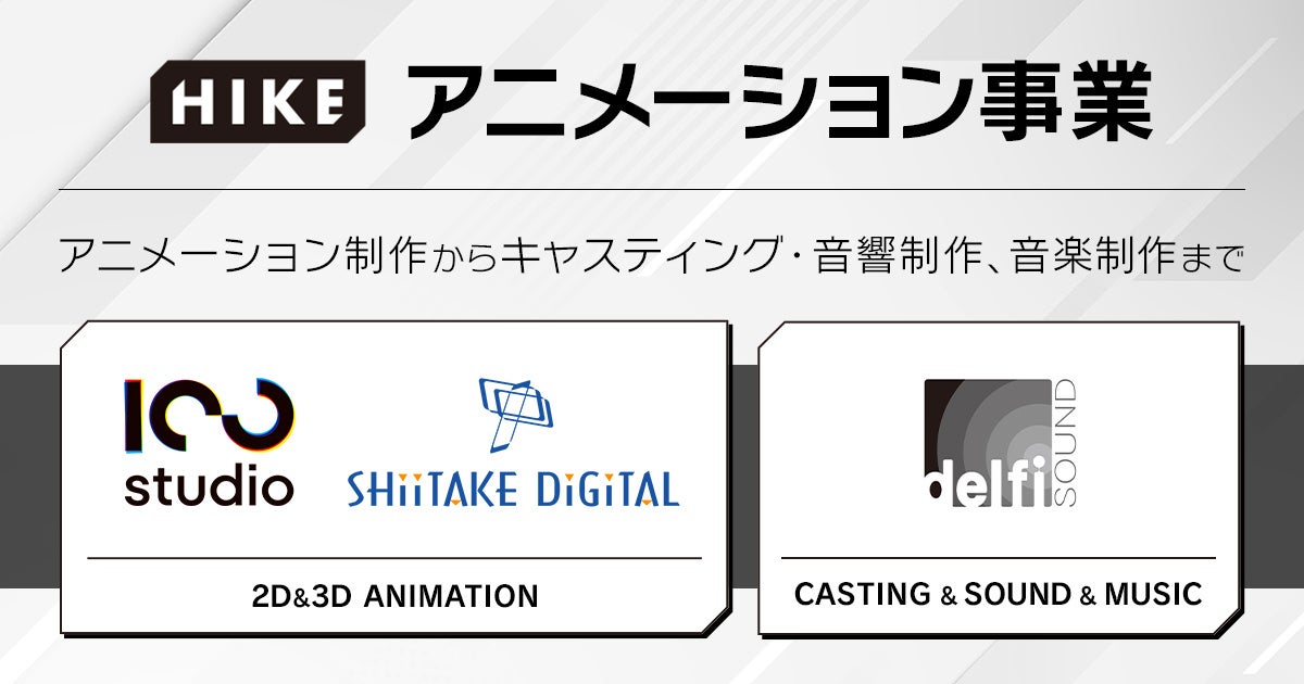 株式会社HIKE(本社:東京都新宿区、代表取締役:三上 政高)はデジタルアニメーションスタジオ「100studio」の音響制作業務を「デルファイサウンド」に一元化いたします。2005年設立のデルファイサウンドは都内にレコーディングスタジオを有し、音響制作、サウンド制作、音楽原盤製作事業を展開しています。2024年5月、ポールトゥウィンホールディングスグループのPTWジャパン株式会社からHIKEにデルファイサウンドの事業が譲渡されました。このたびデルファイサウンドに100studioの音響制作業務も集約することで、アニメーション事業における劇伴制作・キャスティング・アフレコ収録・ダビングなどの音響制作領域の強化を図ります。HIKEのアニメーション事業では、アニメーション制作の「100studio」と子会社「しいたけデジタル」、音響制作の「デルファイサウンド」というそれぞれの強みを活かし、より良い作品とソリューションを提供してまいります。