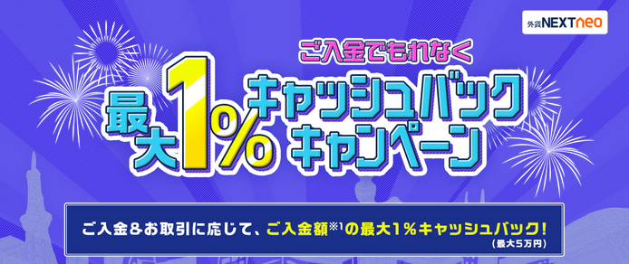 「ご入金でもれなく最大1%キャッシュバックキャンペーン」実施!