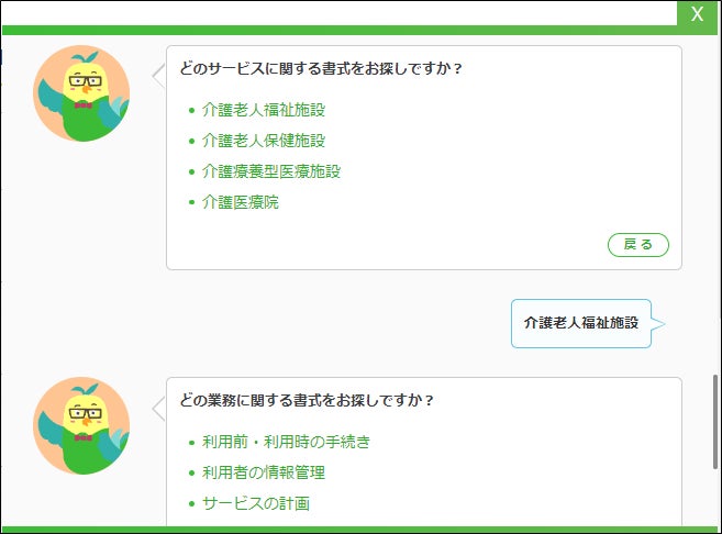 「トリタロウ」というキャラクターが書式の検索を手助けします。