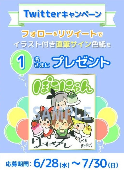 ~「ぽこにゃんのイラスト付き直筆サイン色紙」が当たるTwitterキャンペーンも開催~