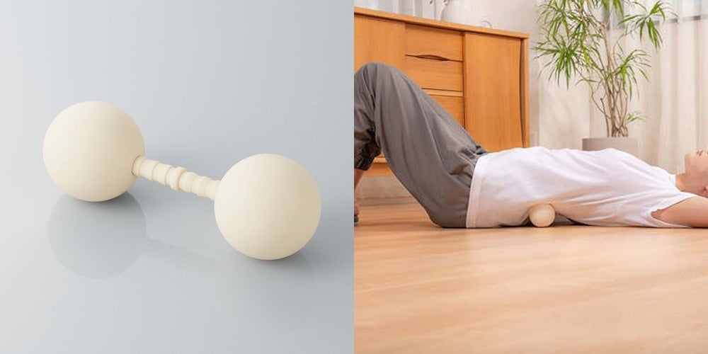 気になる部位にしっかり届く、伸びるストレッチボール。刺激したい部位に合わせてボール幅を約140mmから約220mmまで調整可能。肩甲骨まわりの筋肉はもちろん、コリが気になる他の部位にも効果的です。