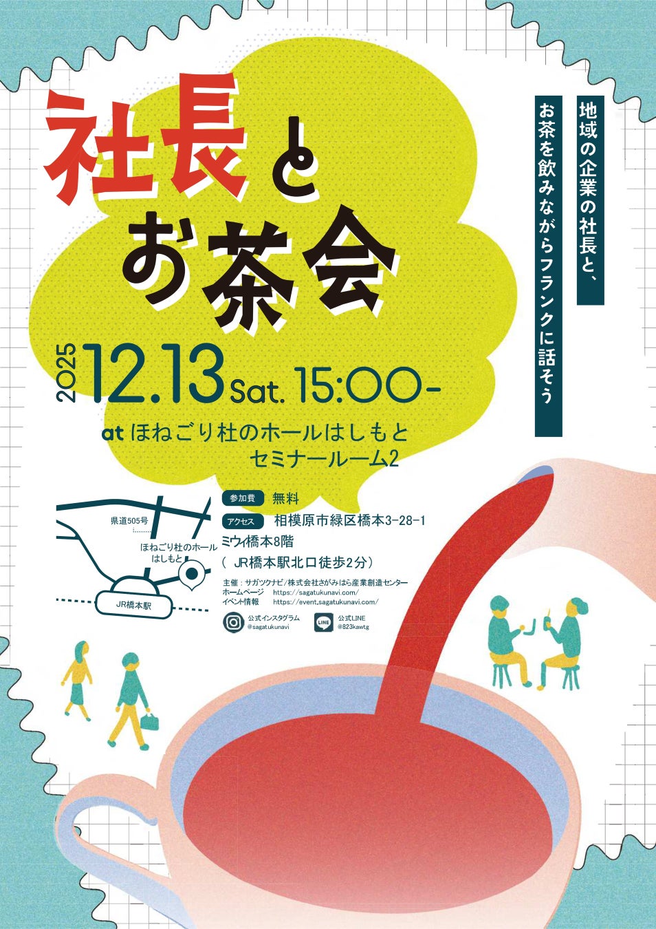 相模原市は、地元企業の雇用促進を見据えた学生と企業のマッチングの機会として、対面での就活交流イベント「社長とお茶会」を12月13日(土)に開催。現在学生の参加者を募集中です。