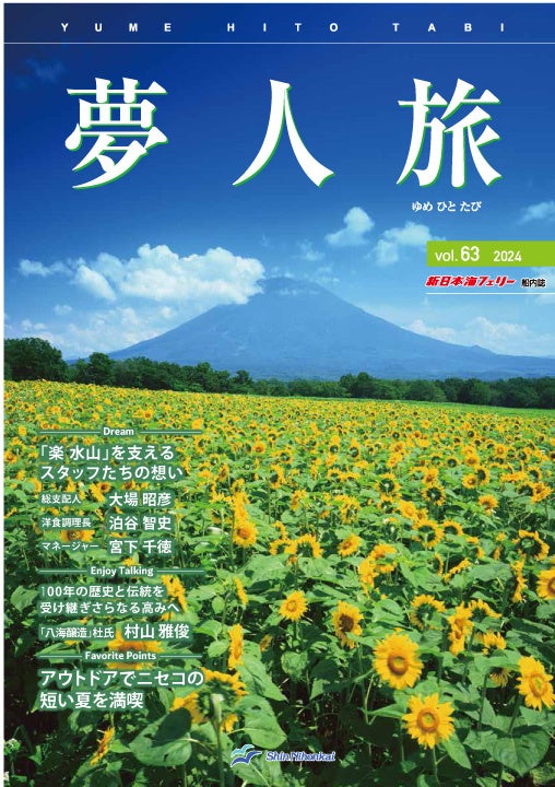 舞鶴-小樽、敦賀-苫小牧、新潟-小樽、敦賀-新潟-秋田-苫小牧を運航する新日本海フェリー株式会社(本社:大阪市)は、船内誌「夢人旅」vol.63を発行しました。