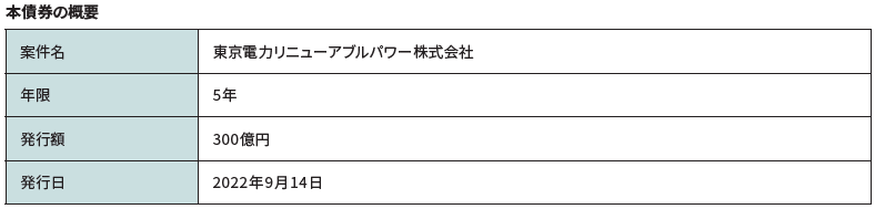 東京電力リニューアブルパワー株式会社が発行するグリーンボンドへの投資のお知らせ