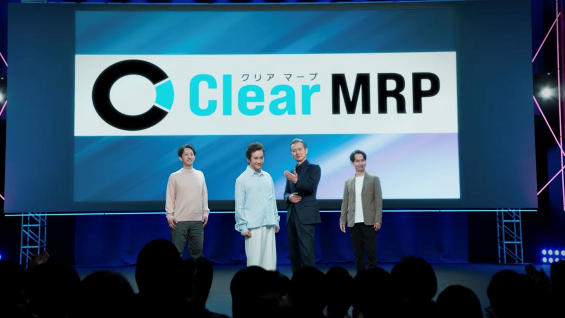 新TV-CMでは、「クリアマープ」を紹介するプレゼンターという役どころを演じることとなった渡部さん。撮影当日、渡部さんが、舞台のステージに登壇すると、自らの動線や歩くスピード、目線、スピーチに合わせたジェスチャー、ポージング、プレゼン中のテンションなど、細部に至るまで入念に監督と話し合い、本TV-CMの世界観にふさわしいプレゼンター像を丁寧に作り上げていました。本番が始まってからも、「これぐらいのニュアンスでどうでしょうか?」「ここは動きを止めた方がいいですか?」と微調整を繰り返し、ご自身で気になるところがあった時は「もう一回お願いします」と積極的にリクエスト。「ビックニュース!!」とアピールするシーンでは、クールな印象の渡部さんですが、スタジオ中に響き渡る大声を張り上げて現場を沸かせるなど、堂々たる存在感と圧巻のプレゼンテーションで、スタジオ中が引きつけられていました。