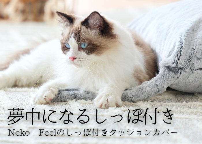 ソファやベッドなどで、現在お使いのクッションが「猫フィール」に早変わりできる「しっぽ付きクッションカバー」を、ぜひ、お試しください。
