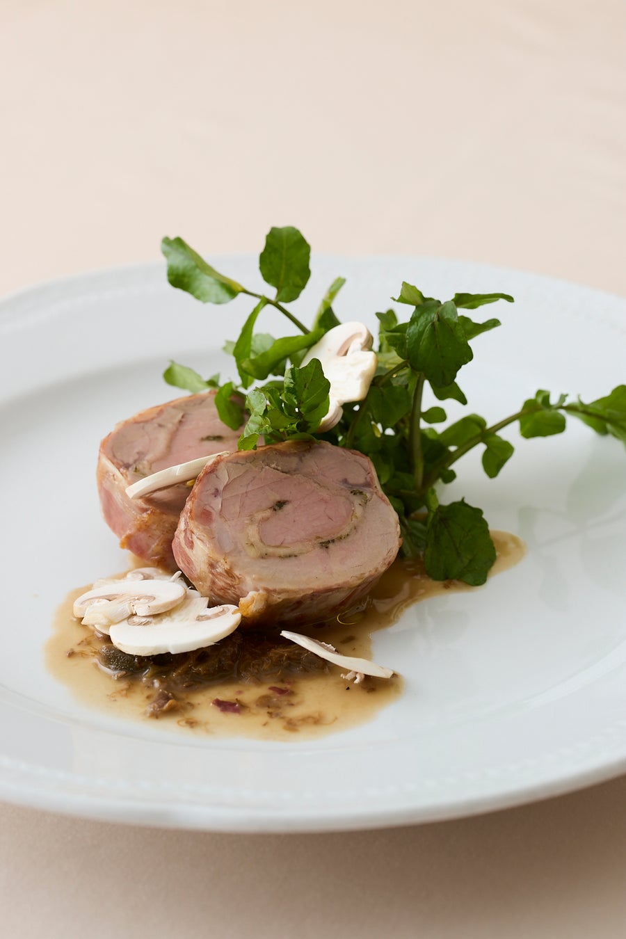 鈴木氏ご本人から説明があり、「イタリア料理と聞くと糖質が高いイメージですが、パンやパスタ以外は基本的に低糖質のメニューが多いです。ですので、健康を意識している方がパスタを食べたいという時は、低糖質な麺に置き換えるだけで良いと思います」と味付けを調整しなくても適正糖質を叶える方法を伝授。「今回開発したパスタは、バターとチーズをベースに和えたアル・ブーロというメニューです。ポイントは、塩で味を決めずイタリアの伝統的な保存食である塩漬けの豚肉パンチェッタを使う事で、調味料ではだせない旨味を出すこと。格段に美味しくなりますよ。また、食物繊維の多いお野菜を取り入れることで糖質が抑えられます」と食材選びのおすすめも。豚肉のインボルティーニについては、「豚ひれ肉はお肉のなかでもヘルシーで糖質も脂質も制限できるのでとても最適なセレクトですね」と吉野氏も太鼓判。