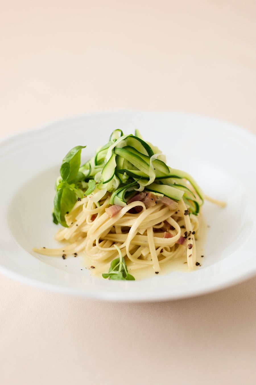 「ズッキーニとバジルのパスタ」(SUNAOもっちりパスタを使用)、「豚肉のインボルティーニ」、「アフォガート」(SUNAO Special<バニラ>を使用)の3品が1月31日(金)より期間限定で、「ピアット・スズキ」にて期間限定で提供されます。ぜひこの機会にお試しください。