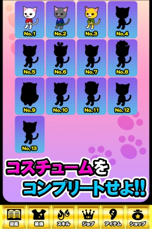 敵キャラを倒して、尼にゃんたちのレベルをあげると、様々な職業に転職できすることができます。