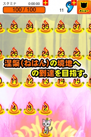 ダメージを与えることができます。4匹の可愛い尼にゃんたちで、次々に襲いかかる煩悩の化身を倒しましょう。