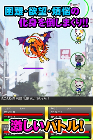 『尼にゃん~ねこねこ珍道中~』は、煩悩にまみれた世界に生きる猫の「尼にゃん」たちが、行く先々に立ちはだかる108個の煩悩を断ち切るべく、敵キャラ(煩悩の化身)を倒し、涅槃(ねはん)の境地を目指す簡単RPGです。