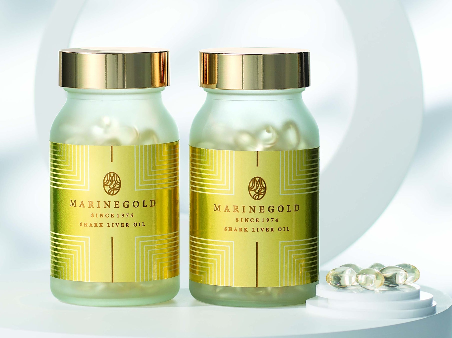 「マリンゴールド」は、驚異的な生命力を持つ深海鮫の肝油を閉じ込めた、ロングセラーの