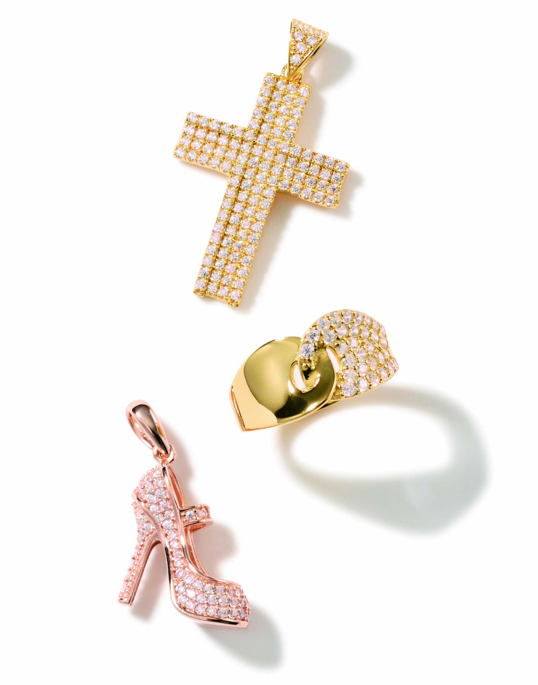 眩い輝きを放つCZをちりばめた、遊び心のあるペンダントトップを紹介します。コンビデザインの