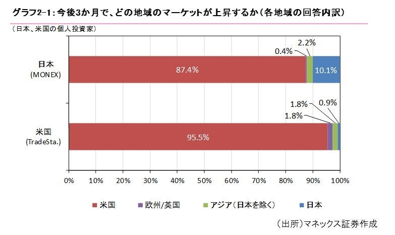 日本・米国の個人投資家ともに米国マーケットへの期待が最も高い割合に
