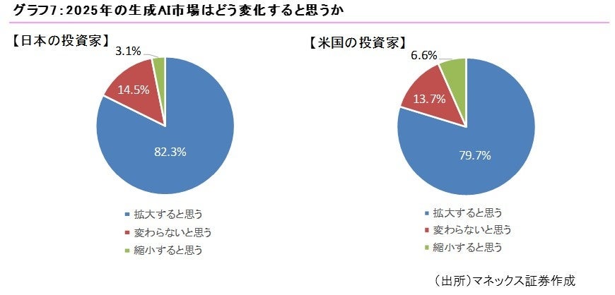 日本・米国の個人投資家ともに2025年の生成AI市場は拡大するとの見方が最多