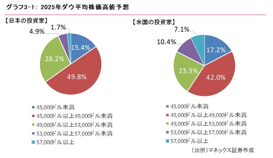 2025年の米国マーケット予想、ダウ平均株価の高値予想は45,000ドル以上49,000ドル未満が最多
