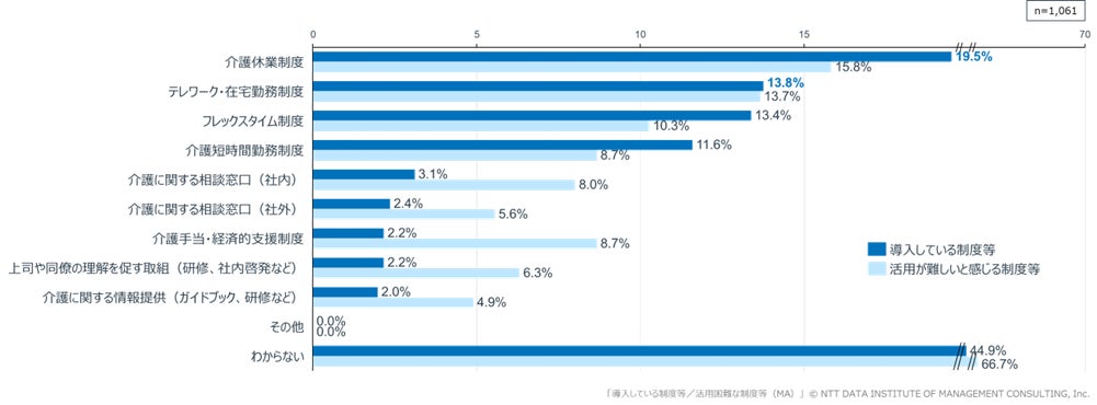 仕事と介護の両立支援制度は導入が進む一方、制度導入企業でも就労者の約4割が未活用