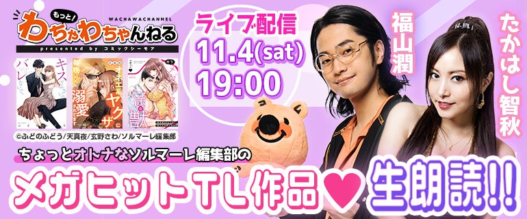 人気声優の福山潤・たかはし智秋が「コミックシーモア」メガヒットTL作品の生朗読に挑戦‼ニコニコチャンネル『もっと!わちゃわちゃんねる』で特番決定!!