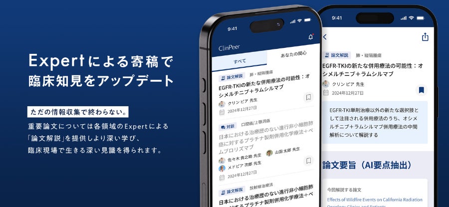 メドピア株式会社(東京都中央区、代表取締役 兼 執行役員社長 CEO:後藤 直樹、以下メドピア)は、本日(2025年7月14日)、専門医向け論文キュレーションアプリ「ClinPeer」(https://clinpeer.medpeer.jp/)の対応する疾患領域を拡大しました。
