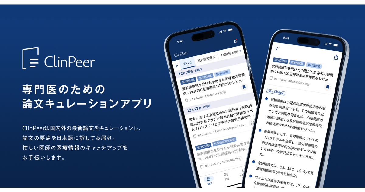 「ClinPeer」は、国内外の最先端の論文を効率的に収集できるアプリです。