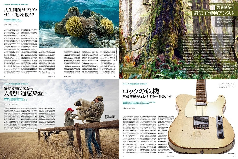 気候危機は地球上のすべての生命にリスクをもたらします。Chapter 4「多様性と生物資源 守り育むために」が示すのは、災厄の連鎖が複雑で、予測を超えて急拡大しかねないという現実です。土壌侵食による農地の荒廃は食糧の奪い合いにつながります。美しいサンゴ礁の消失が意味するのは、サンゴと共生する微生物の共同体マイクロバイオームの死滅です。エレキギターのボディ材として人気の高いスワンプアッシュの枯死は、もちろんロックギタリストだけの危機ではありません。