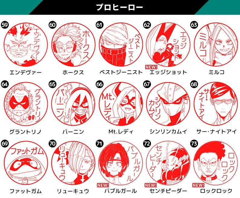 銀行登録OK!?押すたびに緑谷出久に爆豪、轟たちにいつでも会える「僕のヒーローアカデミア はんこコレクション」に、プロヒーローや敵<ヴィラン>より15キャラクターが追加、総勢121種類に。