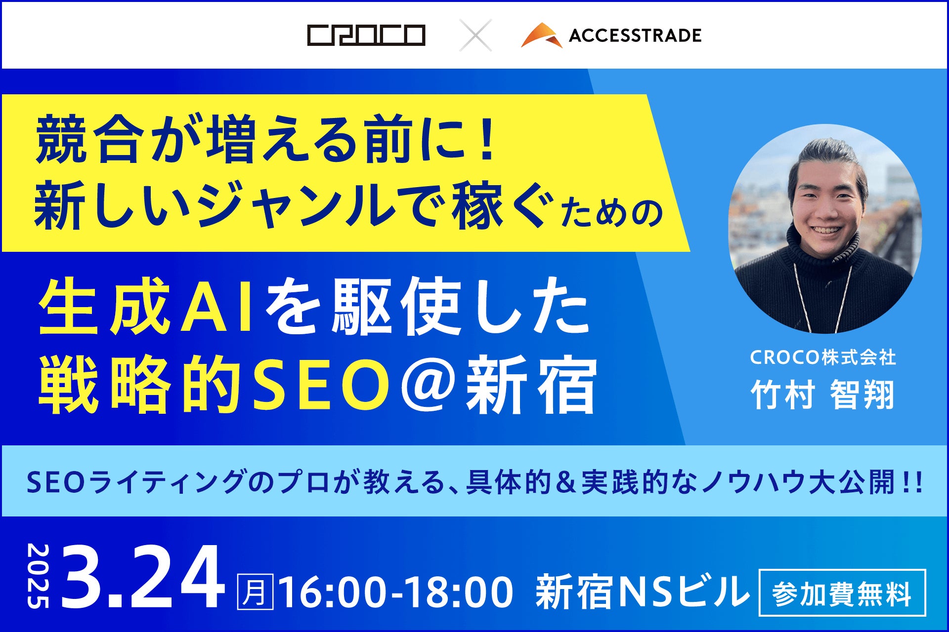 生成AI×戦略的SEOで新ジャンルを攻略!無料セミナー開催【3/24@新宿】