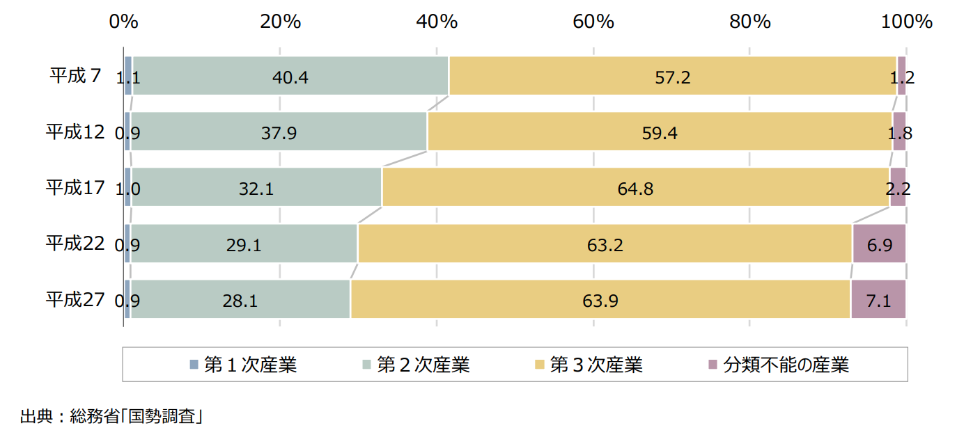 図 . 産業⼤分類別での就業者数の構成⽐の推移