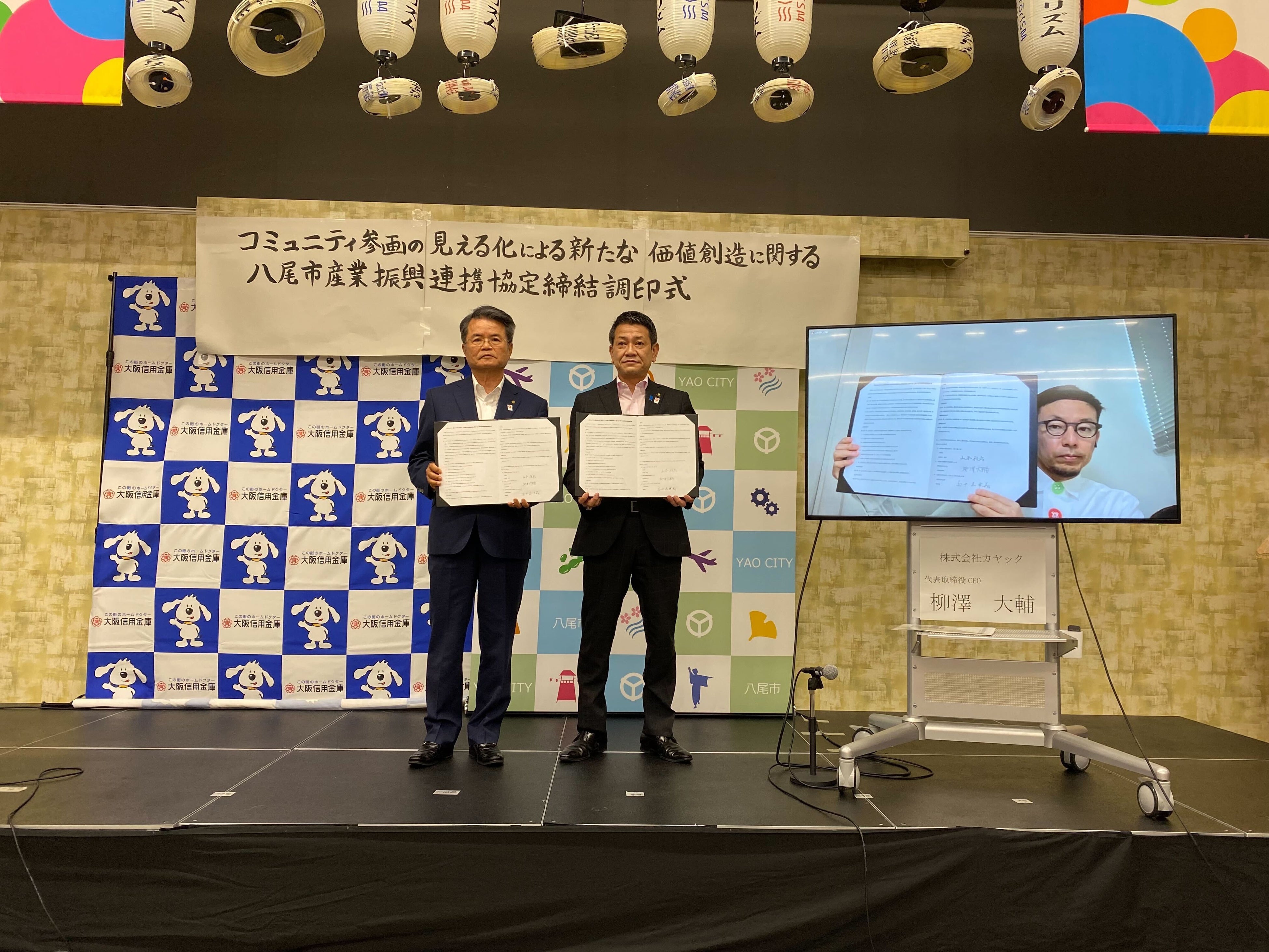 株式会社カヤック(本社:神奈川県鎌倉市、代表取締役CEO:柳澤大輔、東証マザーズ:3904)は、大阪府八尾市(市長:大松桂右)、大阪信用金庫(理事⻑:髙井嘉津義)と、八尾市の持続的な発展に向けて、連携協定を本日締結したことをお知らせいたします。