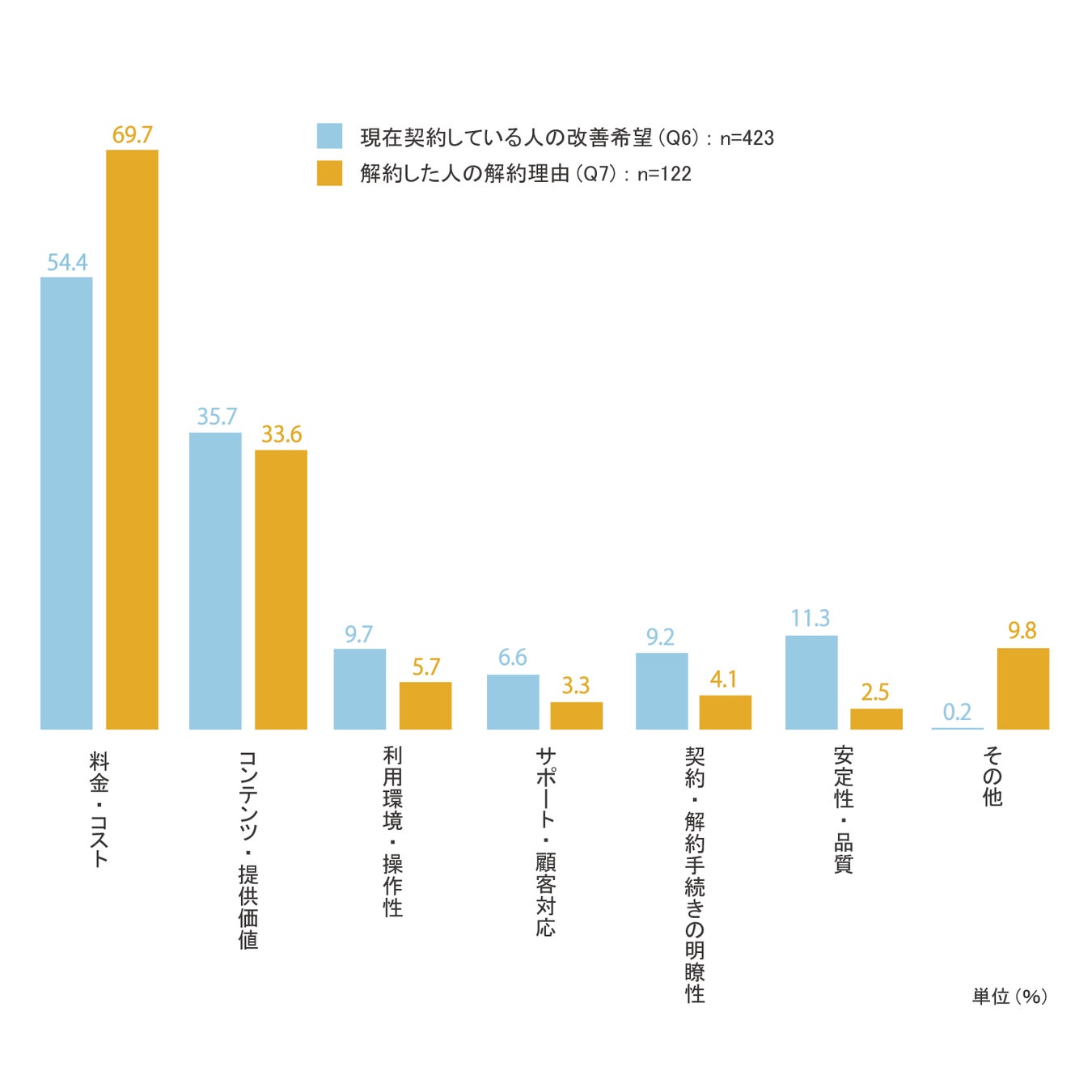 一方で、すでに解約した人の解約理由として「料金・コスト」を挙げた割合は約70%に上ります。