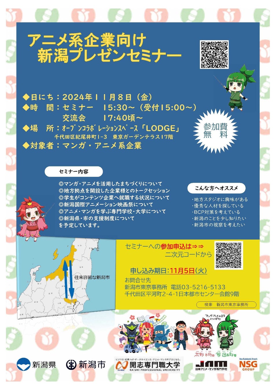 【参加条件】新潟市進出に興味のあるアニメ・マンガ系企業