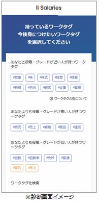 転職サービス「doda」などを提供するパーソルキャリア株式会社(本社:東京都千代田区、代表取締役社長:瀬野尾 裕、以下パーソルキャリア)は、『ジョブごとの報酬水準データ』を企業に提供する「Salaries.jp※1(以下サラリーズ)」の個人向け機能として、「doda」の持つキャリアデータをもとに、自身に向いている仕事と、その推定年収を知ることができる「ワークタグ診断※2」の提供を開始しました。