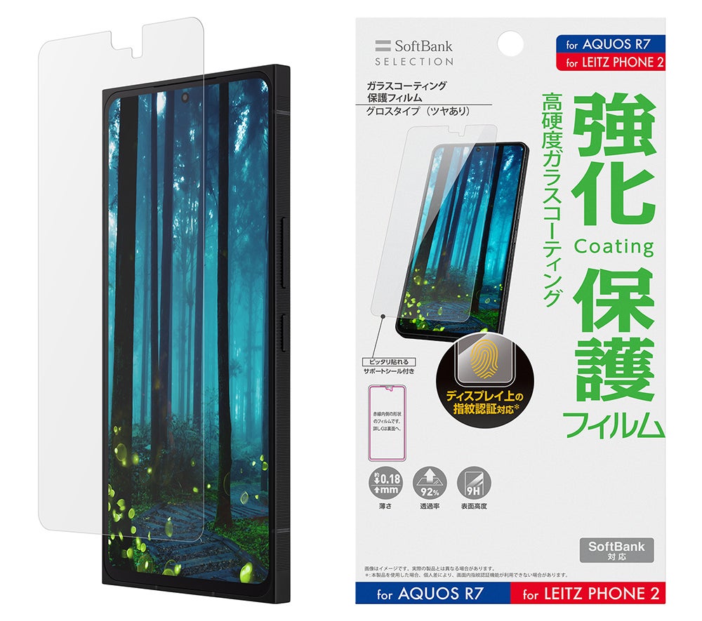 薄さ約0.18mmながら表面硬度9Hの高硬度なガラスコーティングフィルムで、キズに強く、操作感が良い保護フィルムに仕上げています。指紋や汚れが落ちやすく、ガラスコーティング面は透過率92%以上と透明度が高く、ディスプレイの画像を美しく映し出します。また、ディスプレイ上の指紋認証※3に対応しているため、端末の機能を損なうことなく、快適にご使用いただけます。