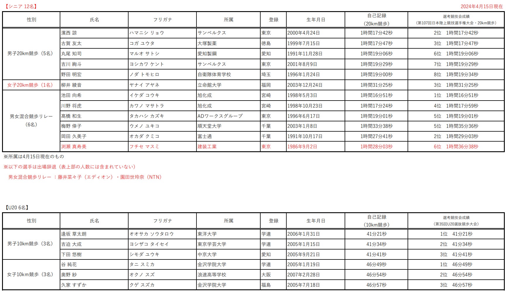 また、パリ2024オリンピック競技大会男女混合競歩リレーの出場権獲得に直結する大会であり、最大2チームの出場権獲得を目指して各国の代表選手と戦います。本大会で22位以内に入れば1チームでの出場権を獲得、さらに2チーム目が各国の2チーム目の上位5か国以内に入れば追加で1チーム(合計2チーム)の出場権獲得となります。