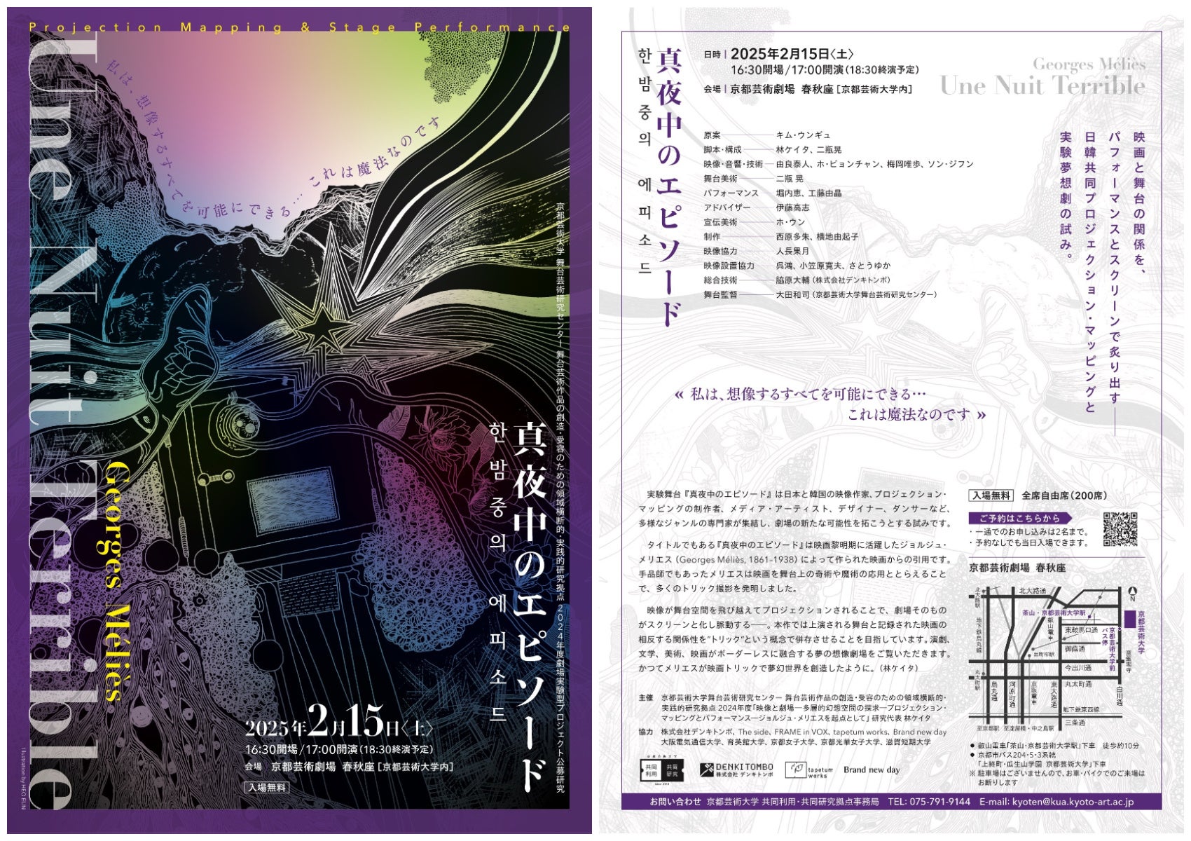 京都芸術大学舞台芸術研究センター 舞台芸術作品の創造・受容のための領域横断的・実践的研究拠点 2024年度「映像と劇場—多層的幻想空間の探求—プロジェクション・マッピングとパフォーマンス—ジョルジュ・メリエスを起点として」 (研究代表:林ケイタ)
