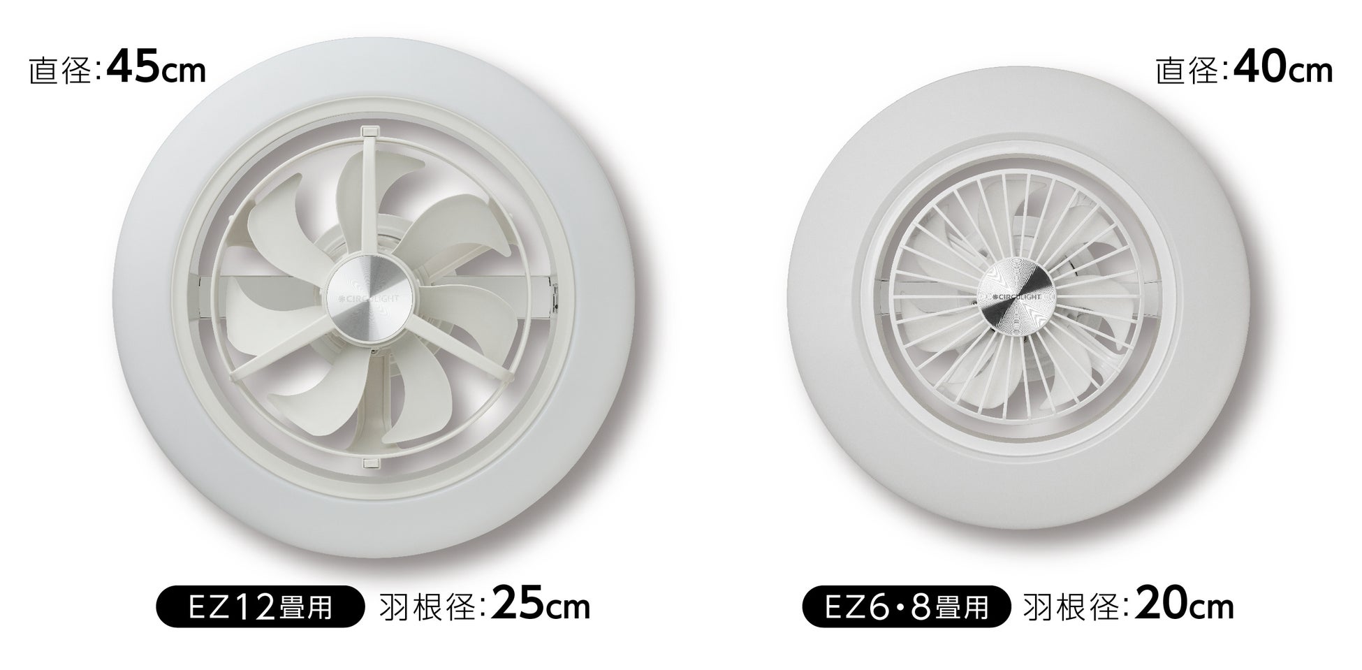 EZシリーズ初の12畳タイプで最大光束は約5000lmで、調光10段階、調色7段階、常夜灯2段階の調光調色が可能です。また羽根径を20cmから25cmにすることで、風量が約150%となり、風量は7段階調整が可能です。