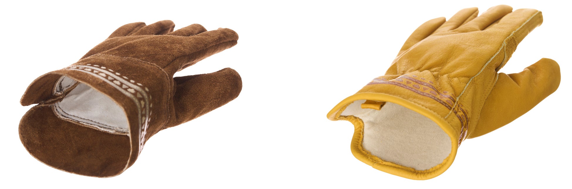 火傷や怪我の防止に役立つ丈夫な牛革でできた、幅広いアウトドアシーンで使える「ナバホ レザーグローブ」と「ナバホ ソフトレザーグローブ」2サイズを、アウトドアライフでぜひともご活用ください。