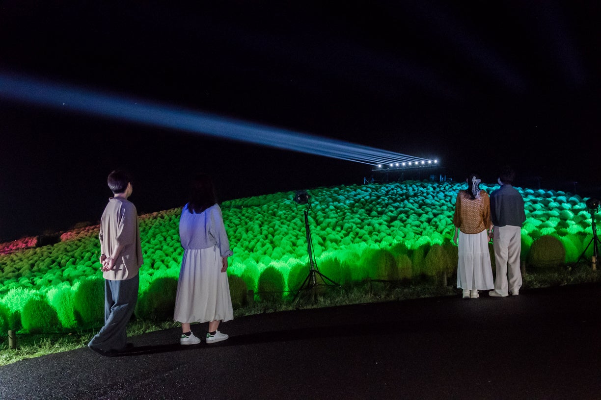 国営ひたち海浜公園(茨城県ひたちなか市)では、9月12日(金)から夜間限定イベント「コキアライトアップ2025」が開催中。約4万本のコキアを舞台に、カラフルなライトアップやレーザービームによる演出、光のドームなど、新たなプログラムが加わり、幻想的な夜を創出します。本イベントは、9月23日(火・祝)までの12日間限定開催となります。