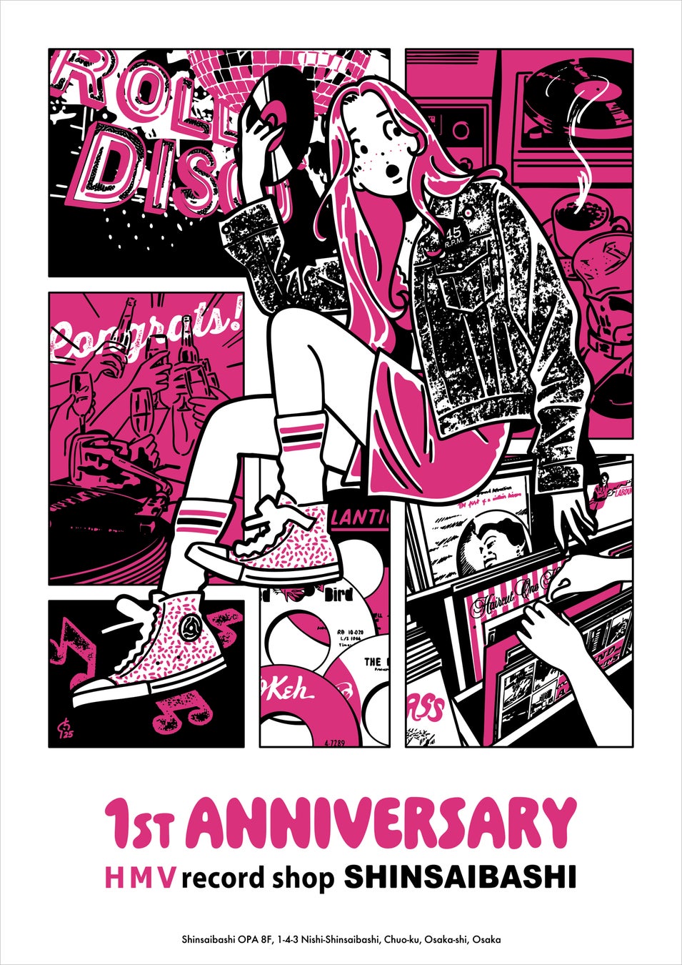 【HMV record shop 心斎橋 オープン1周年】1周年を記念し、さくらいはじめさん描き下ろし作品を使用した「HMV record shop × さくらいはじめ」限定コラボグッズ販売決定!